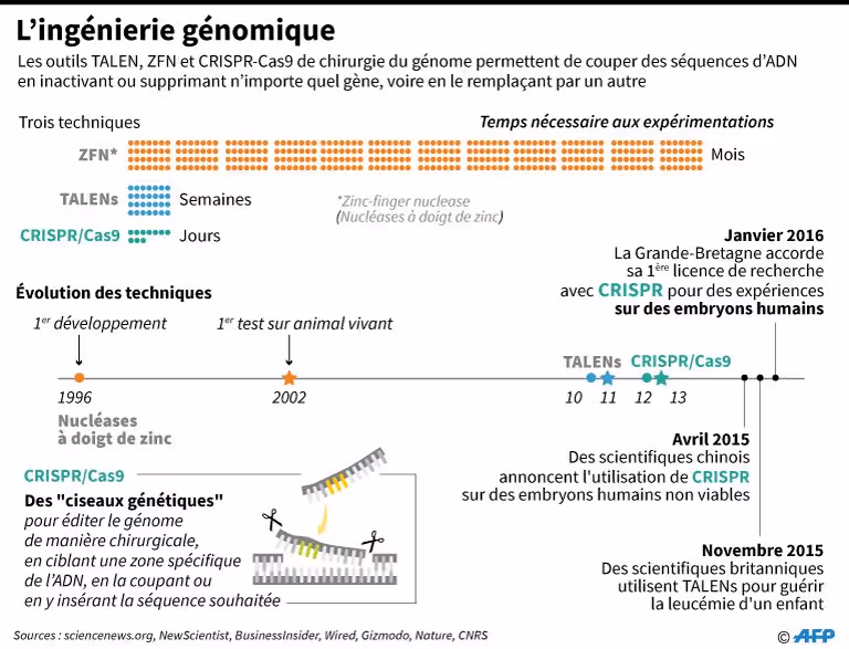 Parmi les évènements ayant défrayé la chronique, citons en premier lieu le professeur He Jiankui et ses expériences médicales illégales qui lui ont valu trois ans de prison. Dès 2015, la Chine, qui souhaite se positionner à la première place dans le domaine du génie génétique, annonce des expérimentations génétiques sur des embryons humains non viables. En novembre 2018, He Jiankui franchit un cap quand il affirme dans une vidéo Youtube avoir fait naître deux jumelles, Lulu et Nana, dont les embryons ont été « édités » pour les immuniser contre le VIH.
