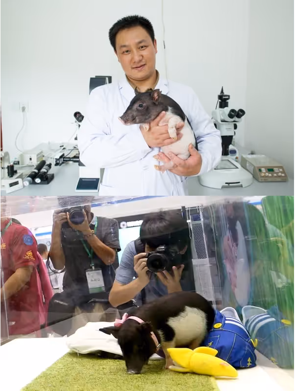 CRISPR est très loin de n’être utilisé que par des personnes insensées ou des amateurs inconscients dans leur garage : nos éminents scientifiques et autres chercheurs désintéressés mènent eux-aussi leurs petites expériences, plébiscitées par la presse et récompensées par des prix et des sommes d’argent astronomiques. Si expérimenter sur l’être humain a pu susciter des polémiques comme nous l’avons vu précédemment, la modification génétique des animaux de laboratoires à des fins de recherche thérapeutique — et d’animaux dits « de production » à des fins économiques — pose vraisemblablement moins de problème éthique. Et dans le domaine des AGM (pour Animaux Génétiquement Modifiés,) CRISPR a clairement marqué une rupture. Longtemps réservées aux souris, les modifications génétiques concernent désormais de nombreux autres animaux. Ce qui relevait il n’y a encore pas si longtemps de la science-fiction est aujourd’hui réalité. Petit tour au musée des horreurs biotechnologiques.