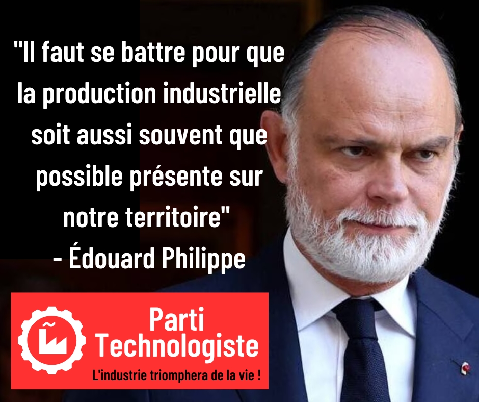 A graduate of Sciences Po and ENA, socialist activist before participating in the creation of the UMP in 2002 with Alain Juppé, mayor of the filthy port and industrial city of Le Havre, former Prime Minister of the Macronist regime, Édouard Philippe regrets the disappearance of French industry at least as much as his Marxist-Leninist comrades.