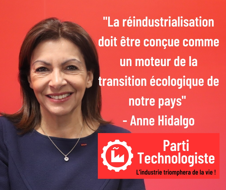 Member of the Socialist Party (PS), mayor of Paris, candidate for the 2022 presidential election, Anne Hidalgo is regularly attacked by the right for the supposedly radical ecological measures that her administration would impose in the capital. An overview of her campaign program shows that Anne Hidalgo does belong to the technologist party.