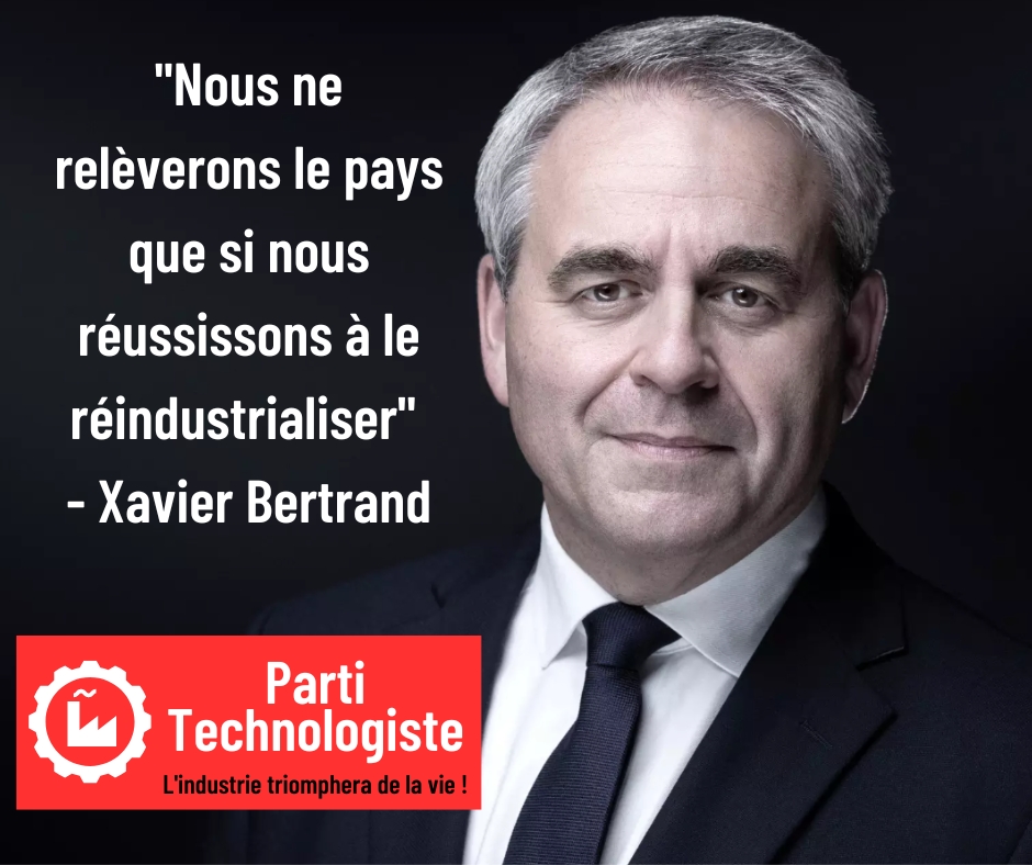 President of the Hauts-de-France Regional Council, candidate in 2022 and minister in the Villepin and then Fillon governments, Xavier Bertrand wants to do what everyone else does. The Final Solution is Reindustrialization!