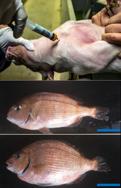 Entre autres joyeusetés, CRISPR aurait par exemple permis à des agronomes d’augmenter la masse musculaire d’animaux d’élevage en Amérique du Sud et en Corée. Au Japon, le Regional Fish Institute a utilisé CRISPR pour modifier des daurades afin d’accélérer leur croissance, jusqu’à ce qu’elles atteignent une taille de 20 % supérieure à la normale. Elles ont été commercialisées au Japon en septembre 2021[12]. En 2023, l’Université de Washington a obtenu une autorisation de la Food and Drug Administration (FDA) américaine pour commercialiser des porcs génétiquement modifiés afin qu’ils soient stériles. Après avoir transplanté des cellules souches d’animaux donneurs dans leurs testicules, ces porcs se sont mis à produire du sperme ne contenant que le matériel génétique de l'animal donneur. L’idée est ainsi de favoriser certains traits « désirés » aux prochaines générations, et d'utiliser les porcs stérilisés comme « pères porteurs[13] ». L’entreprise Genus-plc a quant-à-elle travaillé sur des porcs résistants au virus du SDRP, qui fait perdre des milliards de dollars à l’industrie porcine tous les ans. Elle a obtenu l'approbation pour les commercialiser aux États-Unis en mai dernier[14]. Une quantité impressionnante d’expérimentations, grassement financées et qu’il serait difficile d’énumérer ici de manière exhaustive, sont menées sur toutes sortes d’animaux, avec toujours le même objectif : maximiser les rendements. La grande majorité en sont encore au stade expérimental. Les daurades de Regional Fish Institute et les porcs de Genus-plc sont donc la partie émergée de l’iceberg et nous ne sommes qu’au début de la commercialisation d’AGM à des fins de consommation.