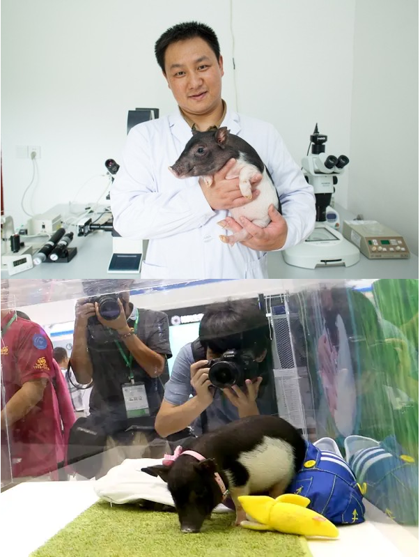 CRISPR est très loin de n’être utilisé que par des personnes insensées ou des amateurs inconscients dans leur garage : nos éminents scientifiques et autres chercheurs désintéressés mènent eux-aussi leurs petites expériences, plébiscitées par la presse et récompensées par des prix et des sommes d’argent astronomiques. Si expérimenter sur l’être humain a pu susciter des polémiques comme nous l’avons vu précédemment, la modification génétique des animaux de laboratoires à des fins de recherche thérapeutique — et d’animaux dits « de production » à des fins économiques — pose vraisemblablement moins de problème éthique. Et dans le domaine des AGM (pour Animaux Génétiquement Modifiés,) CRISPR a clairement marqué une rupture. Longtemps réservées aux souris, les modifications génétiques concernent désormais de nombreux autres animaux. Ce qui relevait il n’y a encore pas si longtemps de la science-fiction est aujourd’hui réalité. Petit tour au musée des horreurs biotechnologiques.