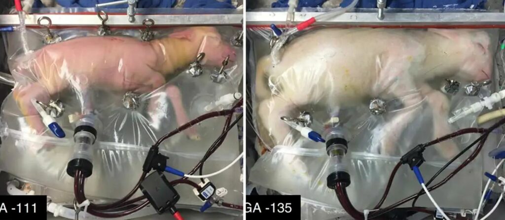 Below are images of lamb fetuses that were extracted from their mothers before being placed in an artificial womb for several weeks. This “feat” was achieved in 2017 by a team of scientists based in Philadelphia in the United States.